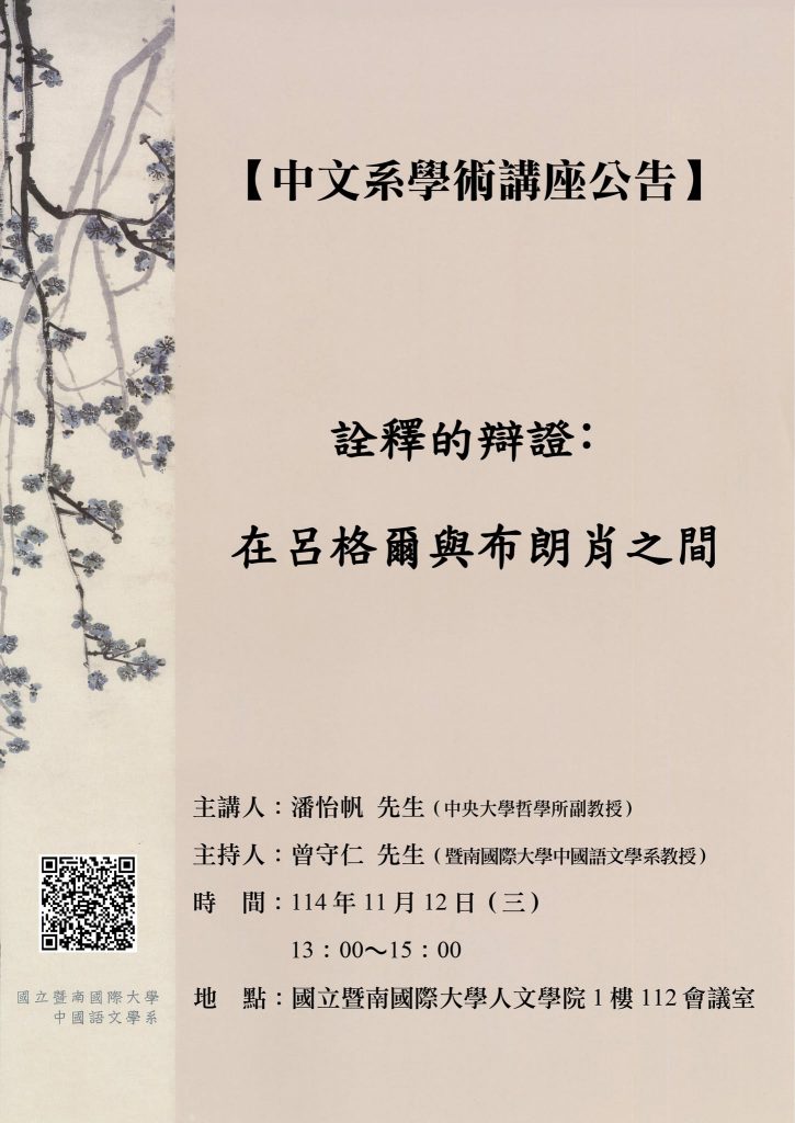 地 點 國立暨南國際大學人文學院1樓112會議室