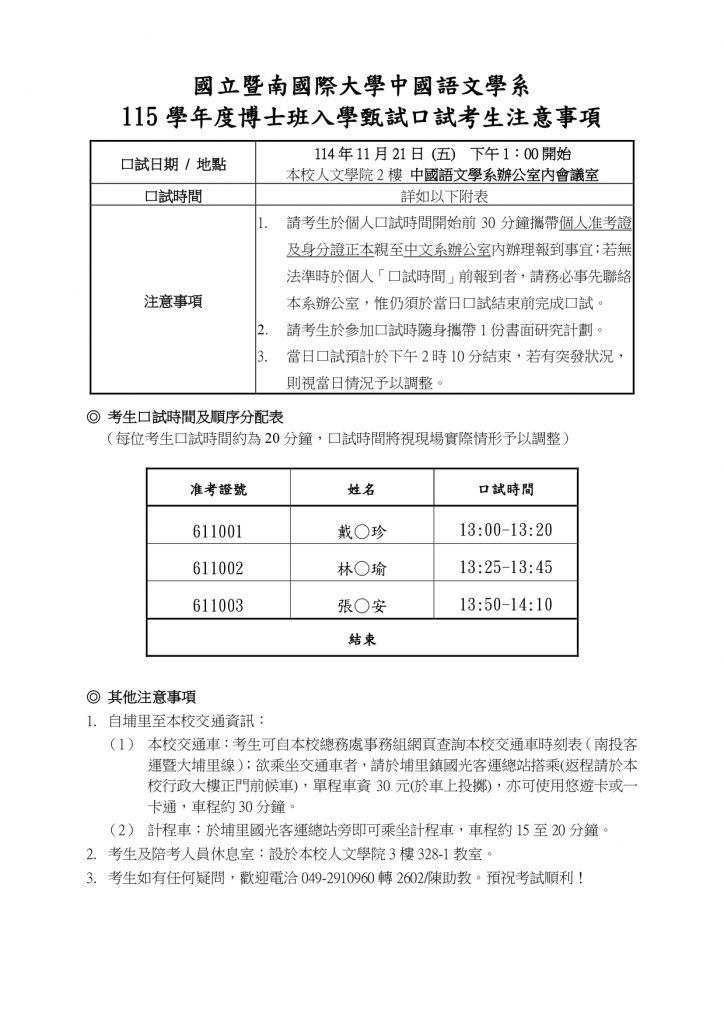 115博士班甄試考生注意事項