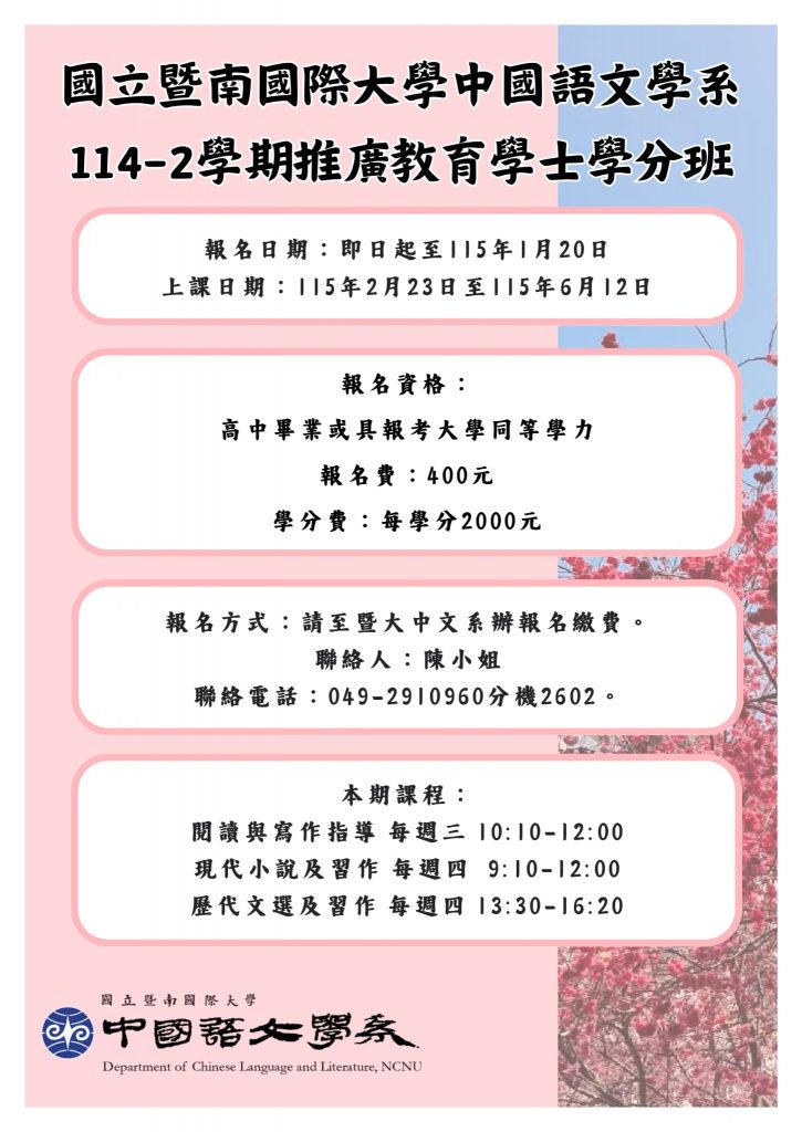 114-2學期開設推廣教育課程